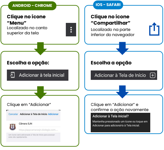 O aplicativo da Câmara Municipal de São João Nepomuceno é um PWA (Progressive Web App) — uma tecnologia moderna que permite instalar o site diretamente no seu smartphone, sem precisar baixar nada nas lojas de aplicativos.